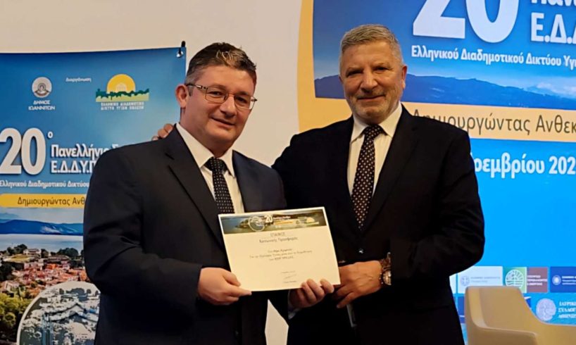 Έπαινο κοινωνικής προσφοράς για την προσπάθεια που γίνεται στον Δήμο Αχαρνών στον τομέα της πρόληψης υγείας μέσα από τη λειτουργία του ΚΕΠ Υγείας, παρέλαβε ο Δήμαρχος Αχαρνών, Σπύρος Βρεττός, από τον πρόεδρο του 20ού Συνεδρίου της ΕΔΔΥΠΥ, Γιώργο Πατούλη.