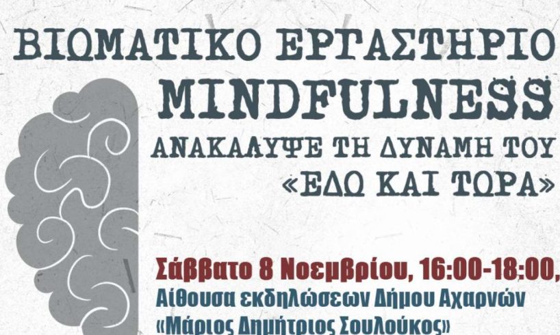 Βιωματικό εργαστήριο Mindfulness και εσωτερικής ηρεμίας. Ανακάλυψε τη δύναμη του «εδώ και τώρα», Σάββατο 8 Νοεμβρίου, 16:00-18:00, Αίθουσα εκδηλώσεων Δήμου Αχαρνών «Μάριος Δημήτριος Σουλούκος».