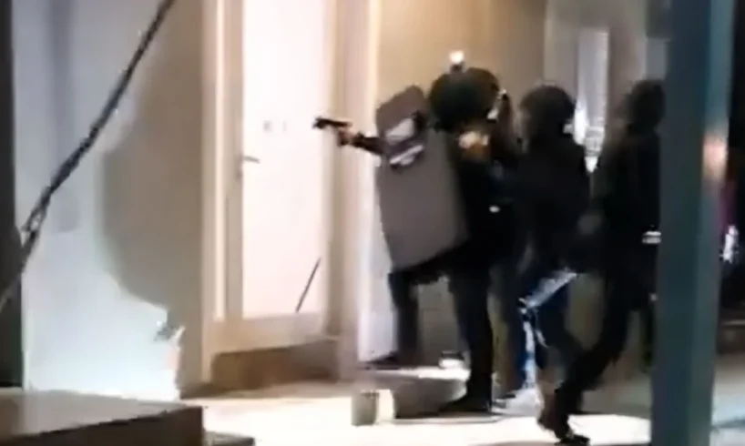 Στο βίντεο που ακολουθεί, διακρίνεται ομάδα ένοπλων αστυνομικών να σπάνε πόρτα και να μπαίνουν στο σπίτι μελών της συμμορίας.