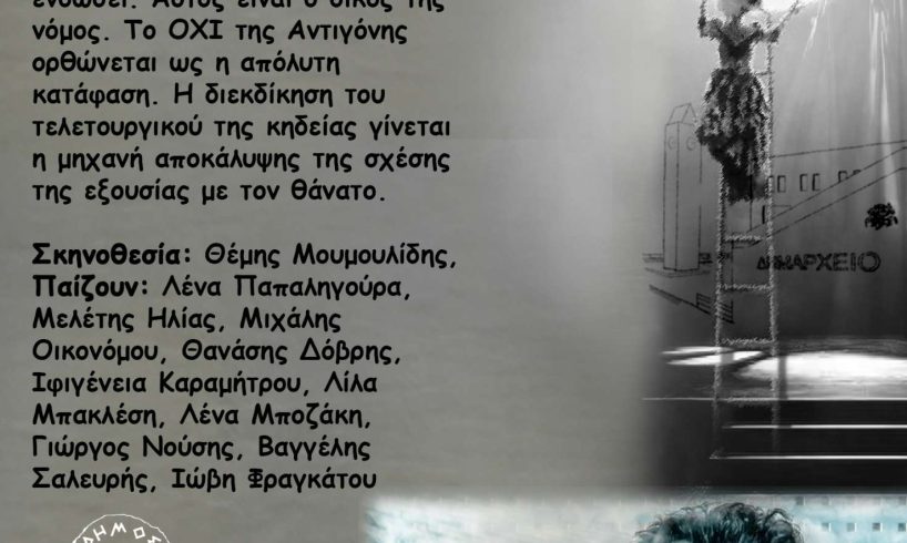 Ο Θέμης Μουμουλίδης επιστρέφει για τρίτη φορά στην Αντιγόνη, την κορυφαία τραγωδία του Σοφοκλή, και σε μια από τις συναρπαστικότερες ηρωίδες στην ιστορία της δυτικής δραματουργίας.