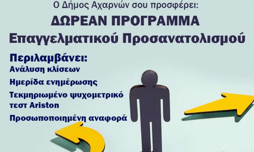 Ο Δήμος Αχαρνών στηρίζει τους αυριανούς επαγγελματίες με δωρεάν τεστ επαγγελματικού προσανατολισμού και ενημερωτικές ημερίδες