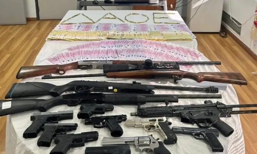 - υποπολυβόλο, 12 πιστόλια, 2 περίστροφα, 4 τυφέκια και καραμπίνες, 22 γεμιστήρες, 1.642 φυσίγγιακαι χειροβομβίδα κρότου λάμψης,